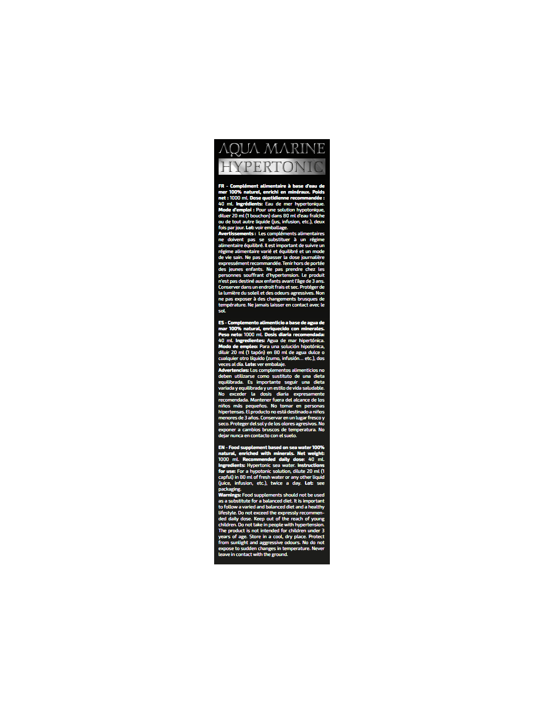 Esta agua marina hipertónica únicamente contiene la composición del agua marina más un extra en minerales para asegurar una correcta hidratación en deportistas y en personas físicamente activas